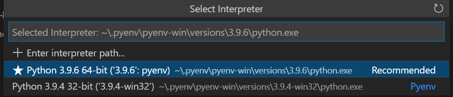 pip install --upgrade pyenv-win